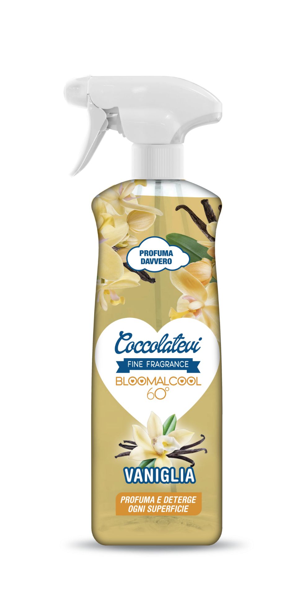 Domov Čistiace prostriedky Kúpeľňa/ kuchyňa/ auto/ nábytok/a iné Coccolatevi Bloomalcohol univerzálny dezinfekčný čistič 750ml – Vanilka k.c 408