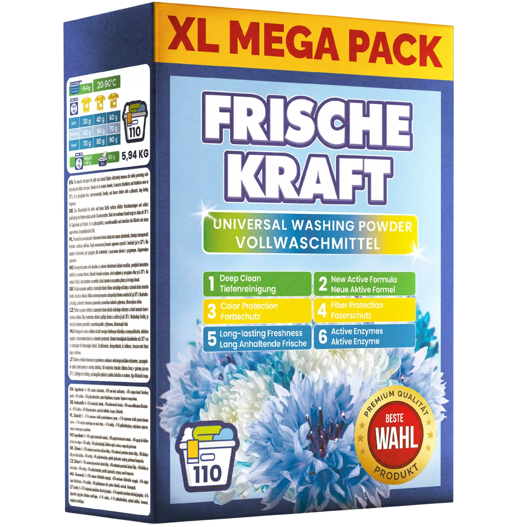 Frische Kraft Universal je účinný prací prášok, ktorý je ideálny na každodenné použitie.