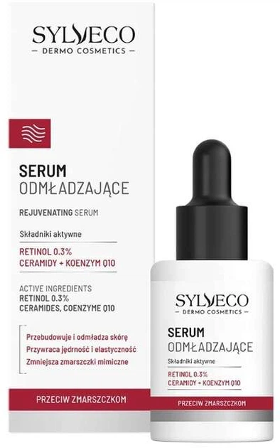 Sylveco Dermo Rejuvenating omladzujúce pleťové sérum bolo vytvorené pre osoby bojujúce s viditeľnými efektmi starnutia , s mimickými vráskami, stratou pevnosti a hustoty pleti . Vďaka použitiu najúčinnejšej zložky proti vráskam, retinolu (0,3%) , sérum znižuje viditeľnosť vrások a viditeľne zlepšuje textúru pleti.