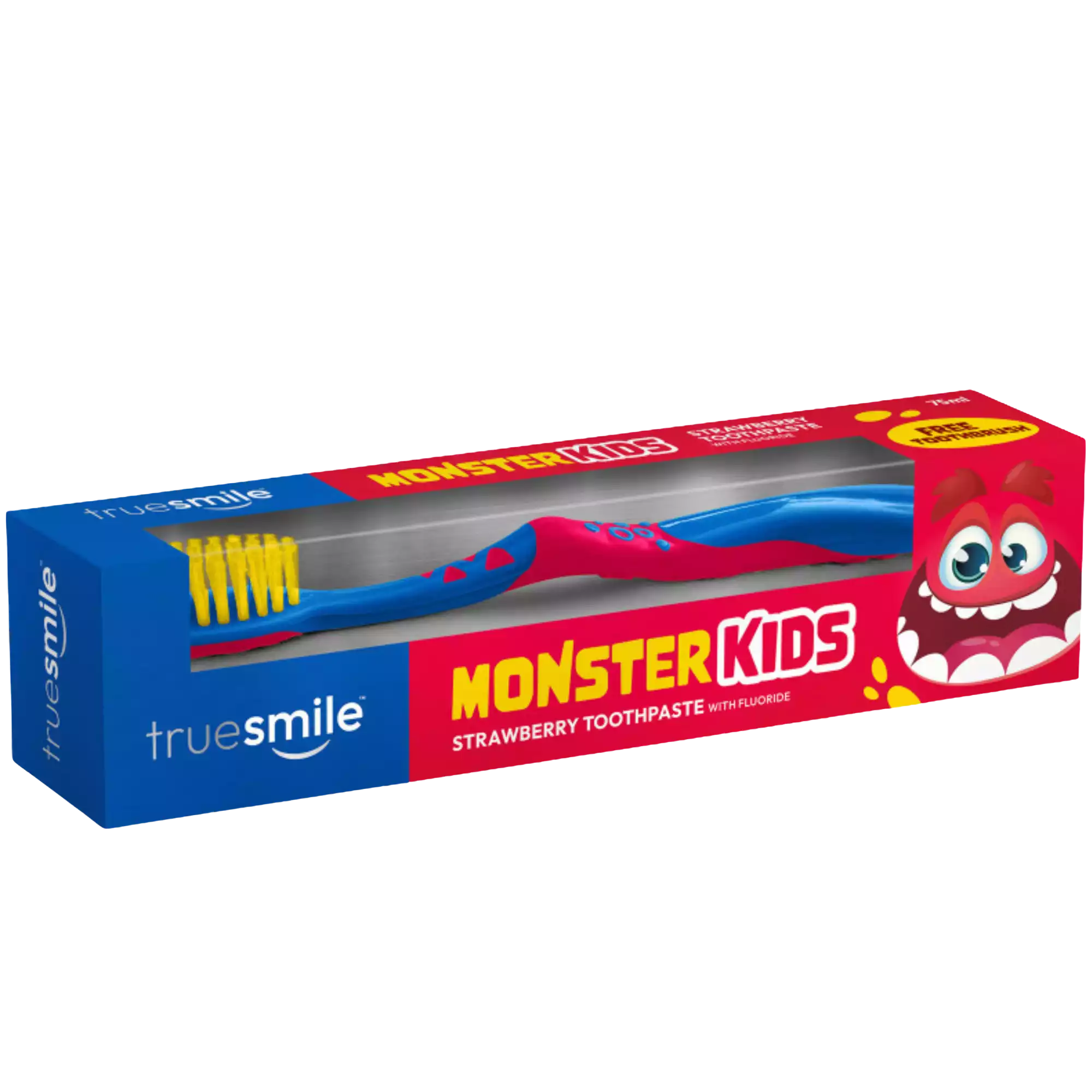 Domov Kozmetika Zubné pasty/ ústna dutina Truesmile detská zubná pasta 75ml + kefka – Monster Kids s jahodovou príchuťou k.c 524
