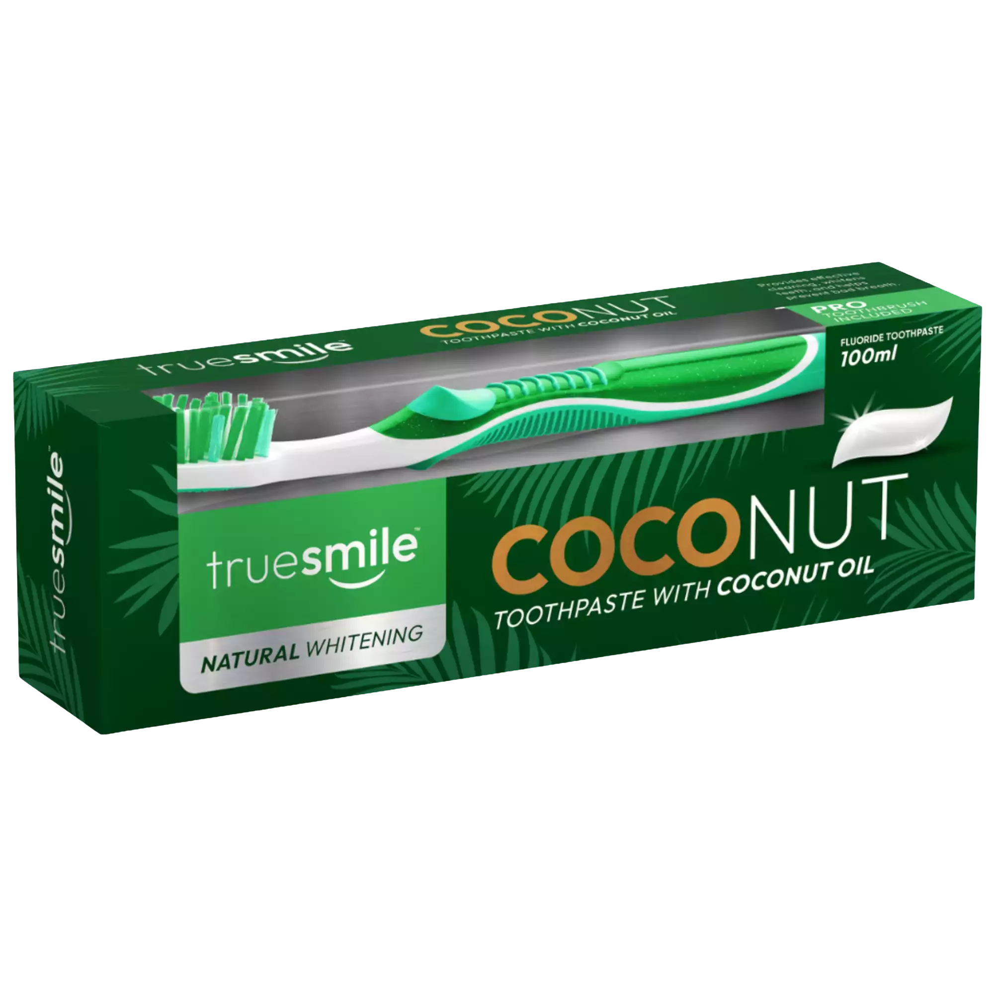 Domov Kozmetika Zubné pasty/ ústna dutina Truesmile zubná pasta 100ml + kefka – Coconut s kokosovým olejom k.c 517